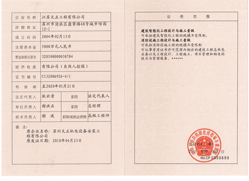消防设施/建筑智能化工程设计与施工壹级