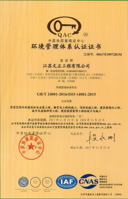 环境管理体系认证证书
