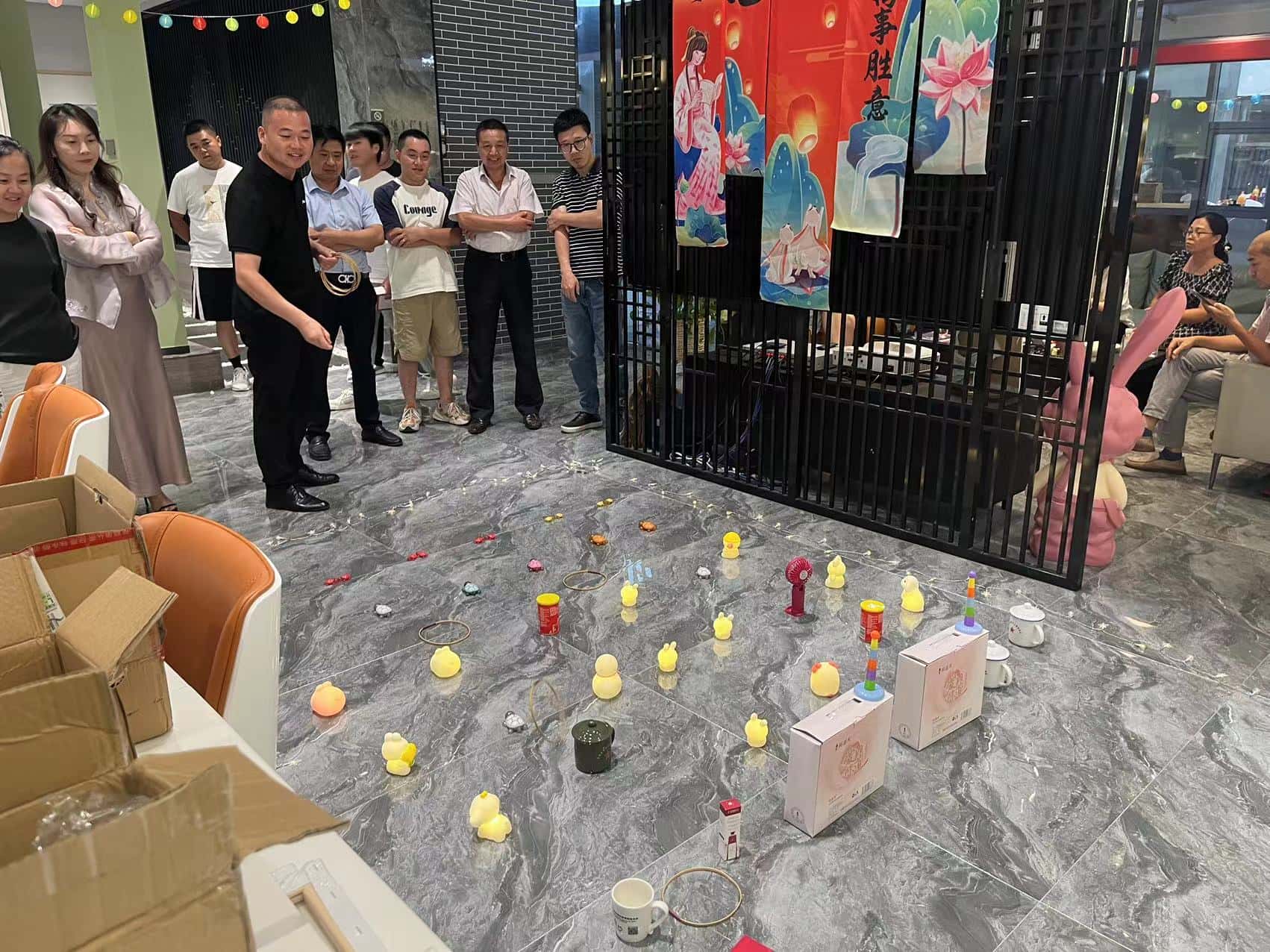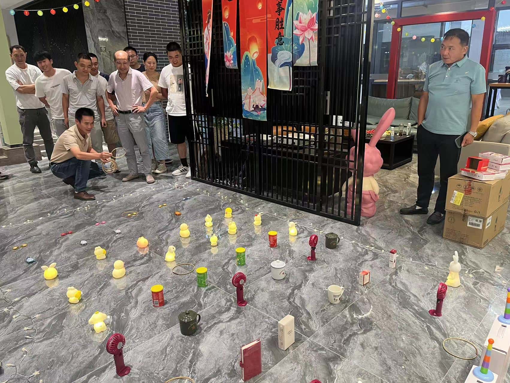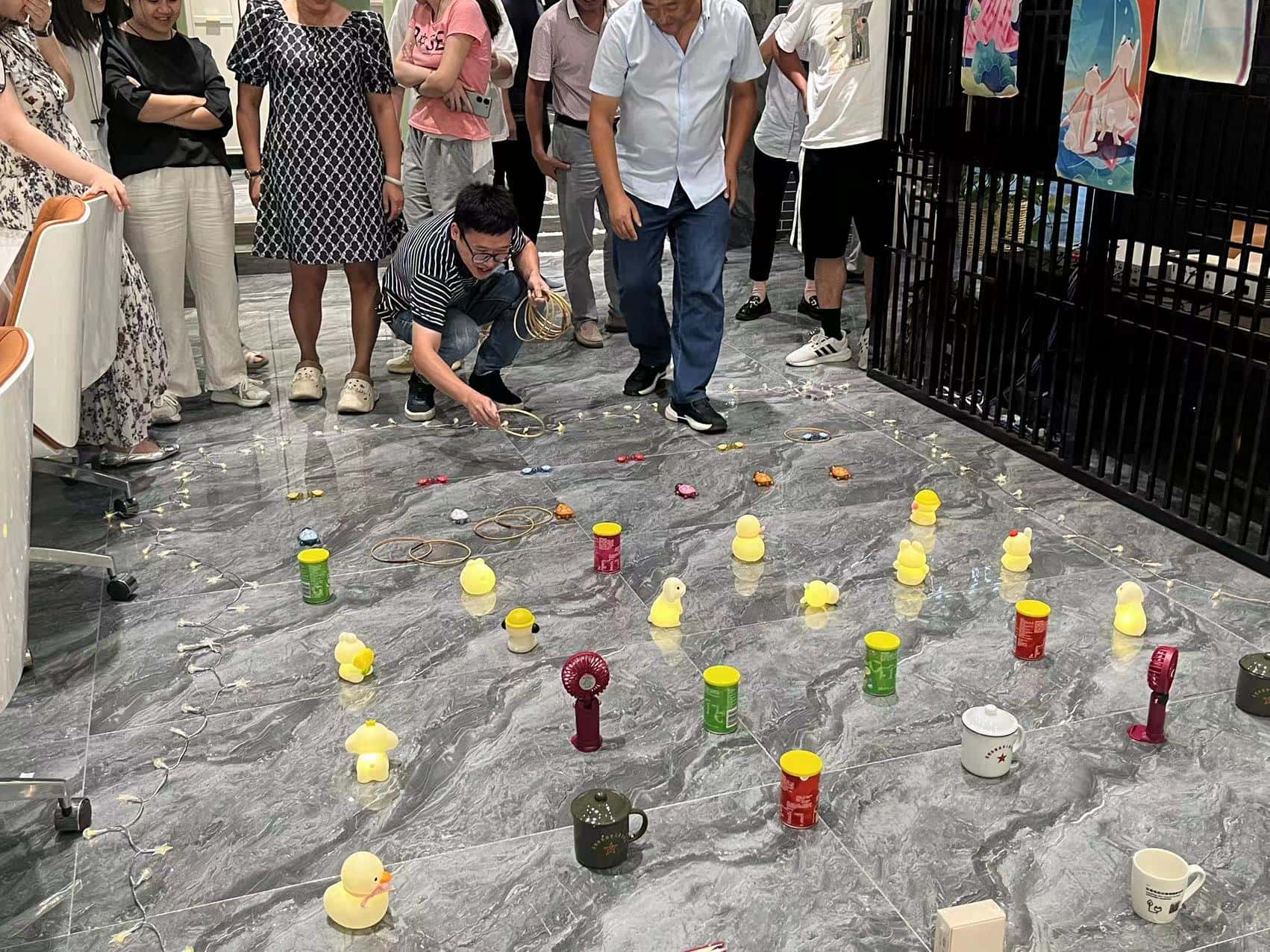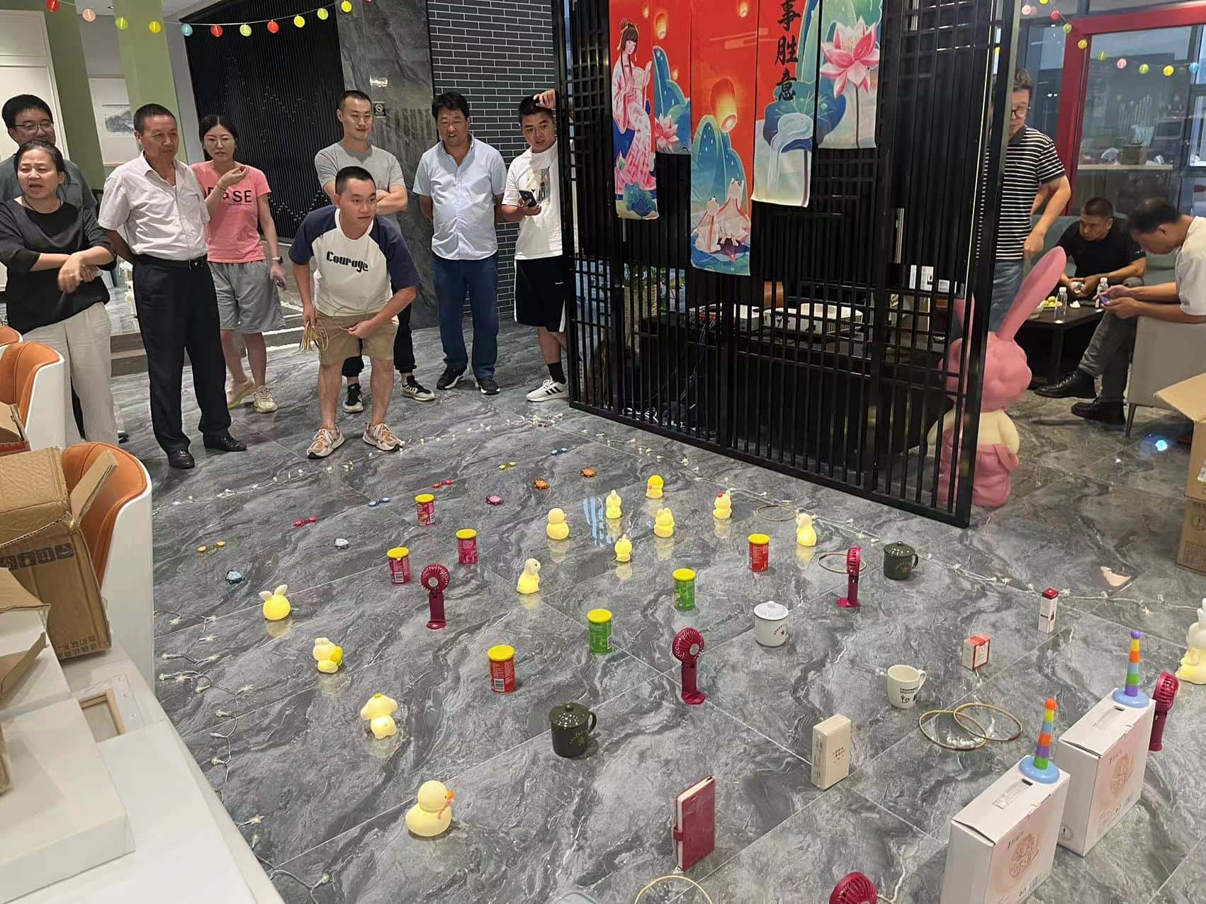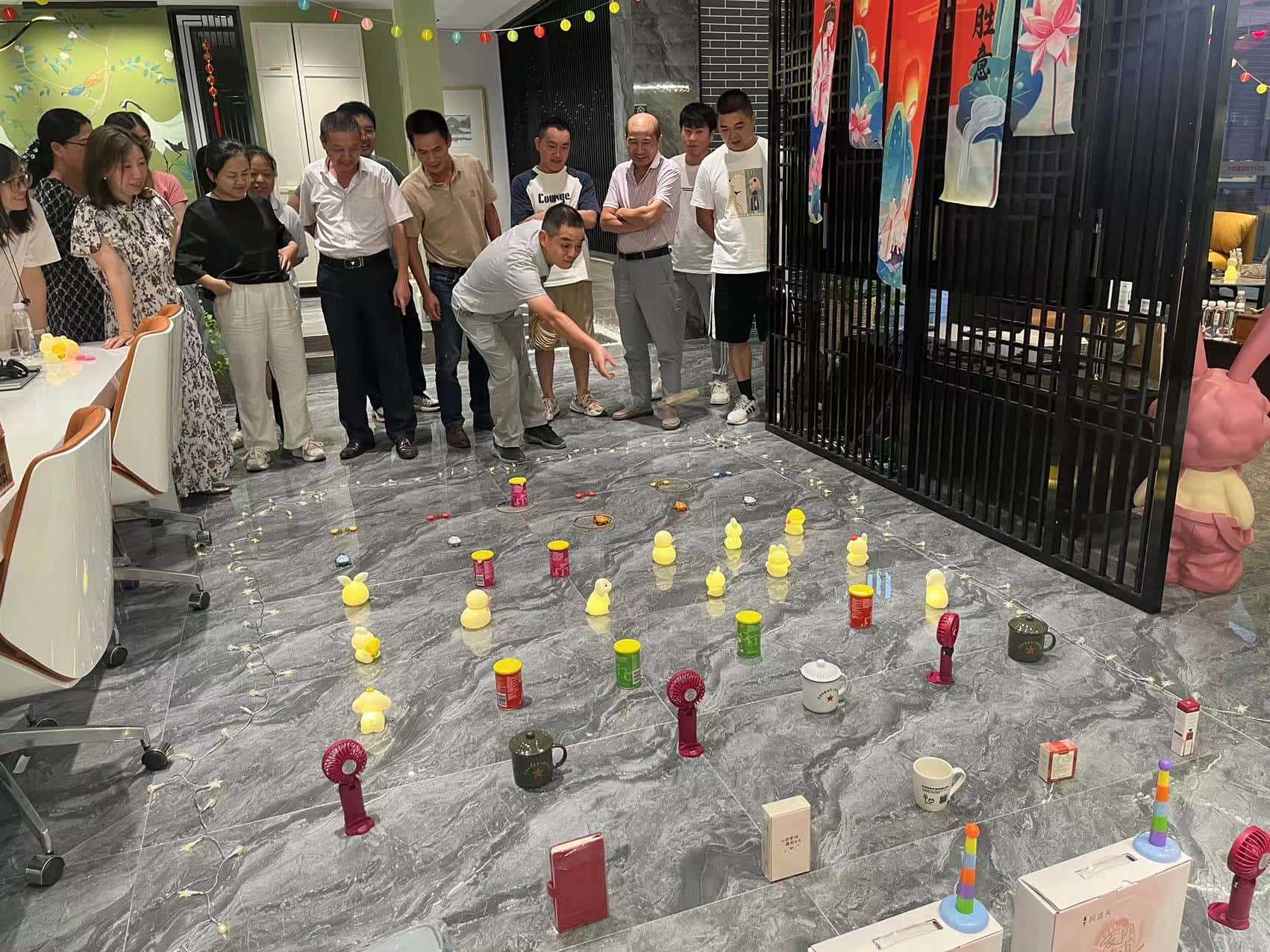 投壶游戏区更是重现了古时的雅趣。修长的箭矢在员工们的手中轻轻飞出,带着一种优雅的力量,朝着壶口奔去。每一次箭矢与壶身的触碰,都像是在诉说着古老与现代的对话,让人不禁遥想起古人在庭院中进行投壶游戏时的风雅之景。