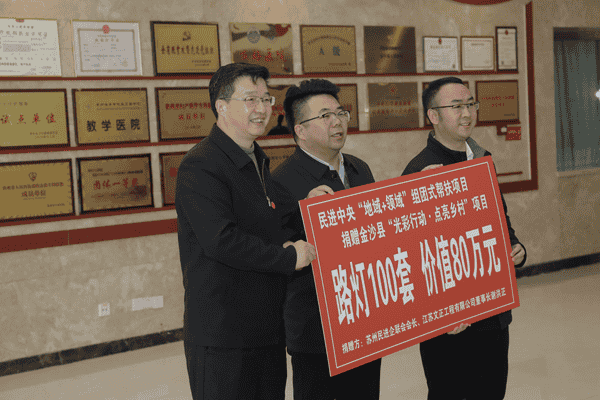 民进江苏经联会常务理事、苏州民进企联会会长、米兰米兰首页董事长谢洪正向金沙县捐赠100套高杆太阳能路灯,总价值80余万元。这批路灯将安装在村寨道路沿线,为当地村民、学生照亮夜间回家的山路,助力乡村基础设施建设。
