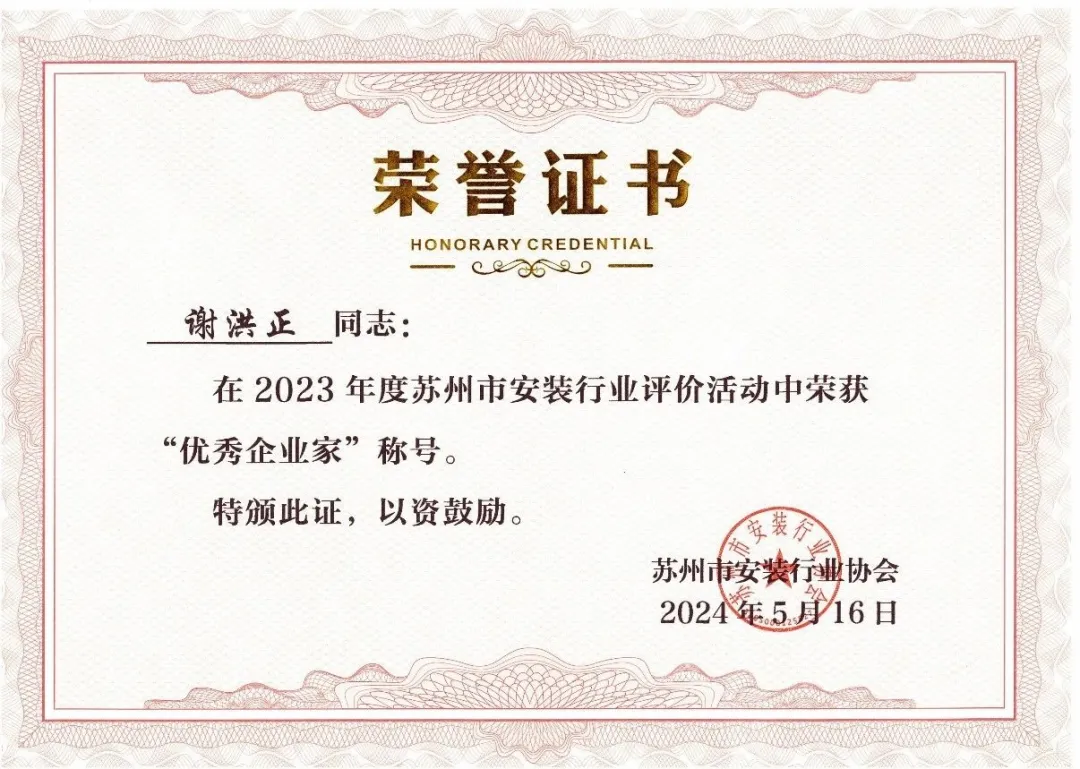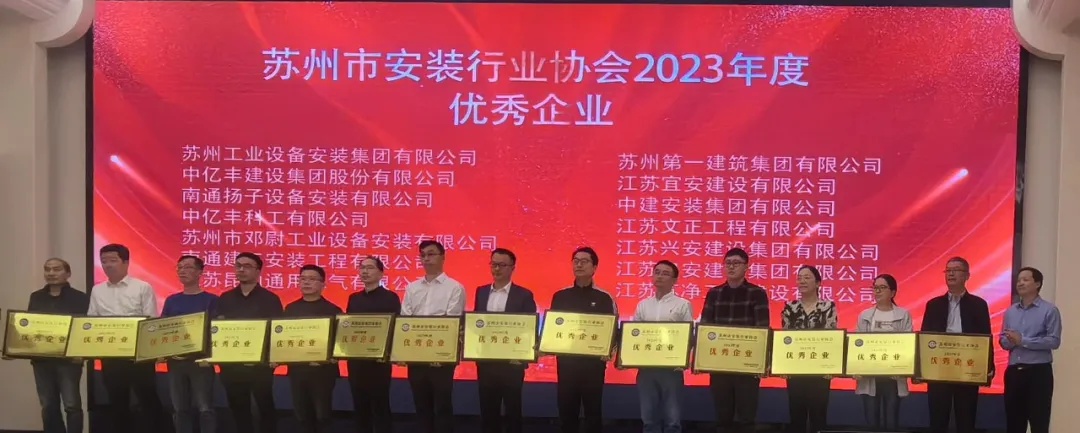 荣获"苏州市安装行业协会2023年度优秀企业"