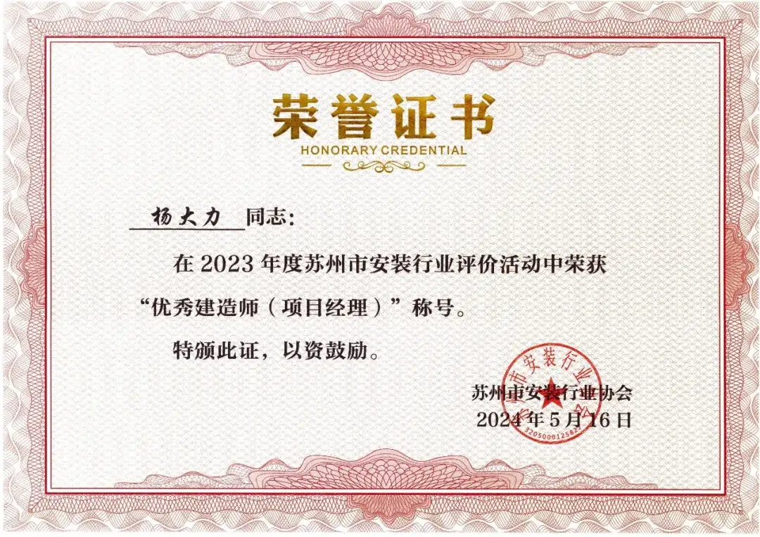 我司将对此次获得的所有荣誉感到无比荣幸,并会以此为动力,进一步加强与各会员单位的交流合作,共同推动苏州市安装行业的持续高质量发展。我们将始终保持敬业精神,恪守初心,凭借优秀的工程质量和服务,为行业发展贡献更大的力量!