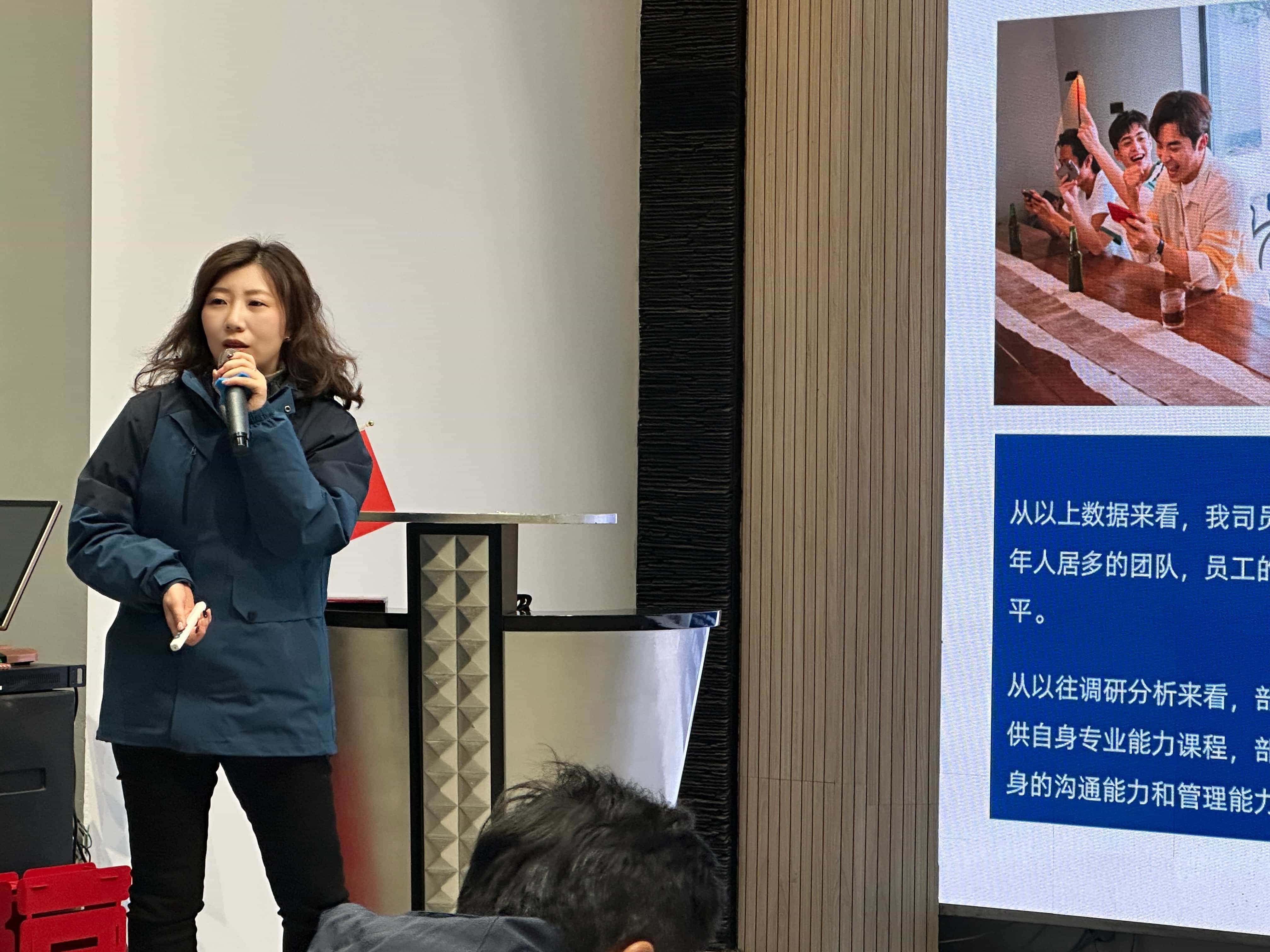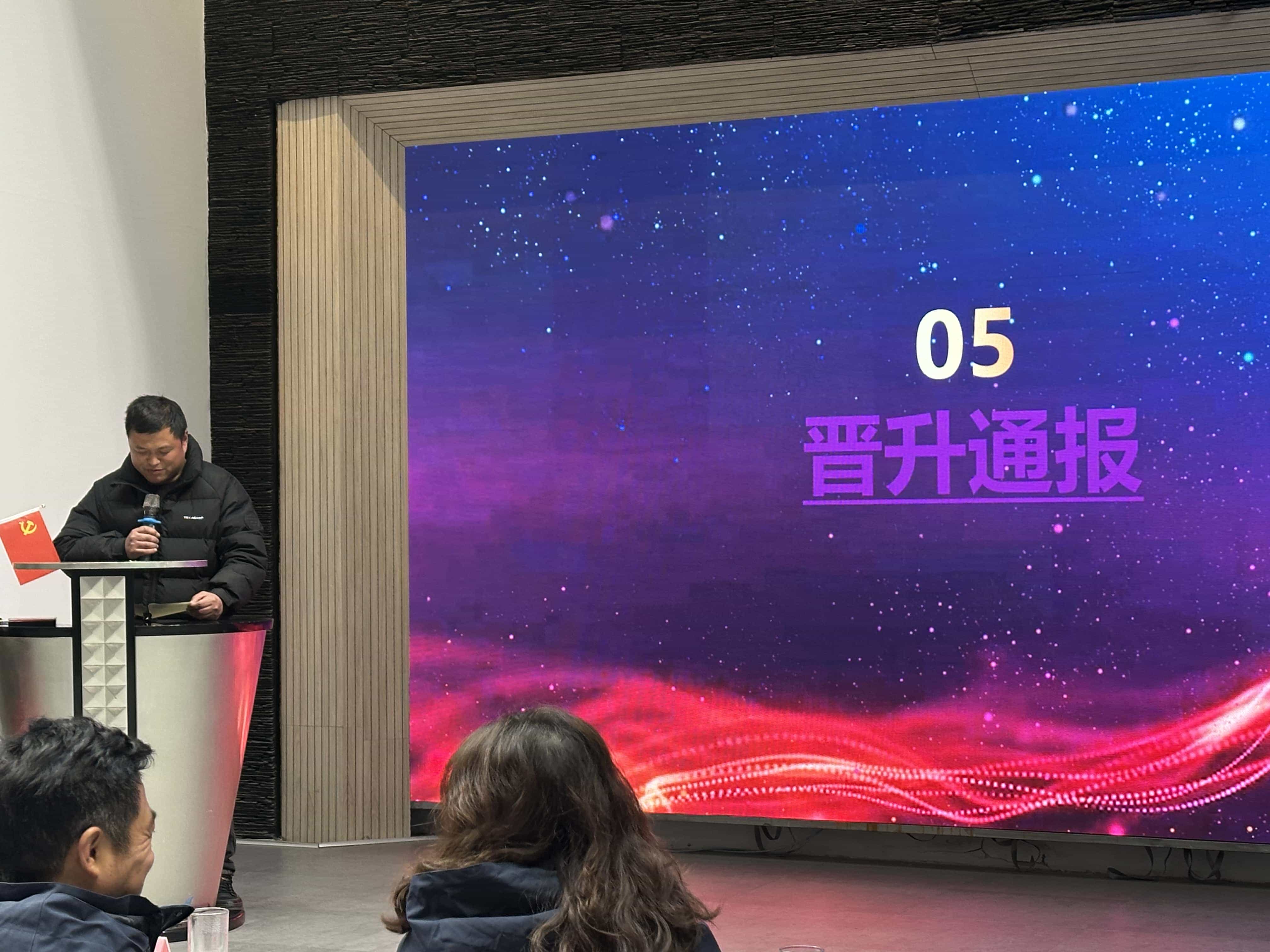 随后,工程部副总经理戴国庆也在会上宣读了全新的项目考核制度。经营副总端方勇详细分析当前市场中标情况,部署 2025 年市场部工作,指明业务拓展方向。行政副总耿静重点介绍 2025 年培训、活动计划,针对红圈现存问题提出解决方案,体现公司对员工成长与文化建设的重视。