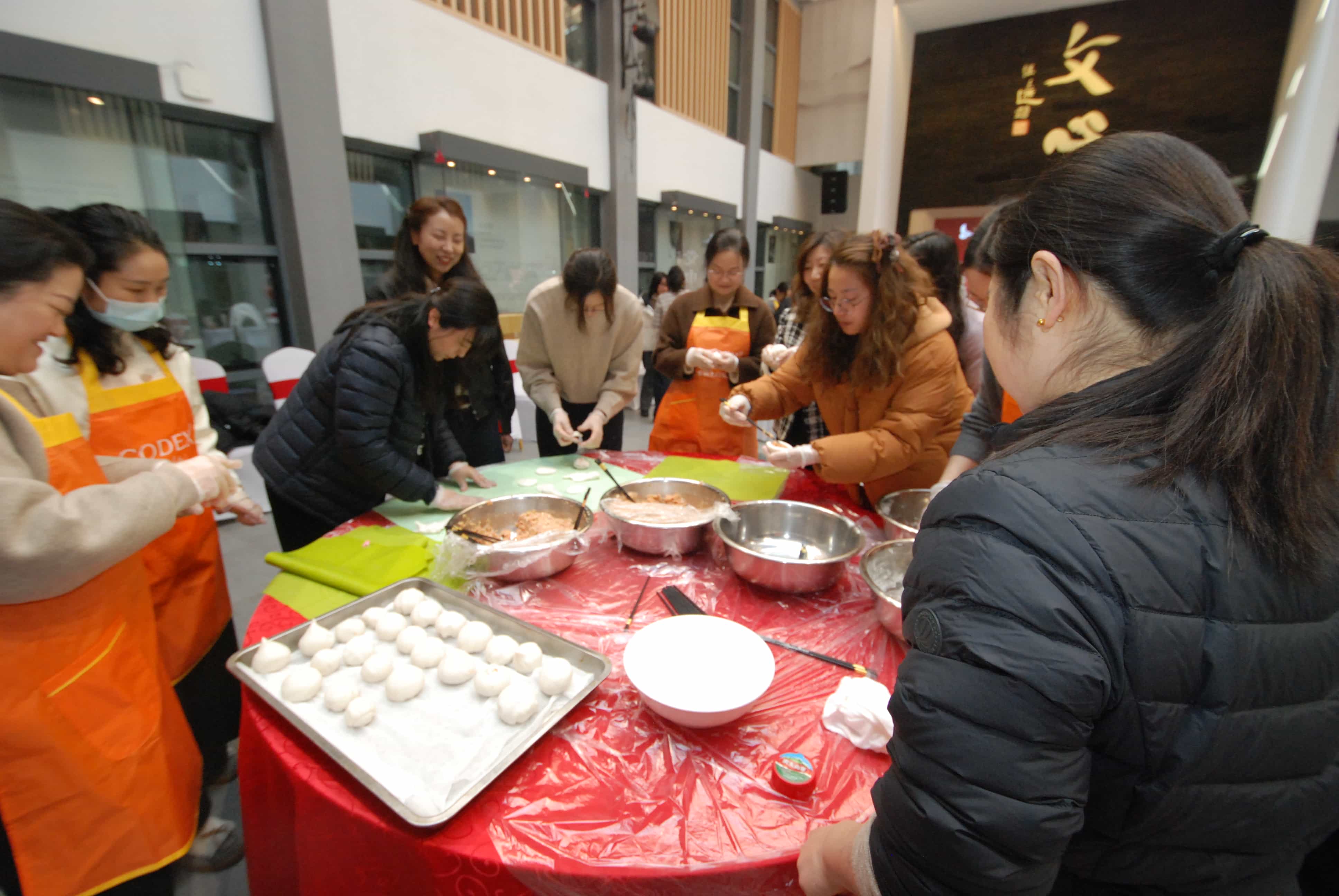 活动现场洋溢着温馨与欢乐的气氛。女警们脱下警服,换上围裙,与公司女职工们一同投入到美食制作中。大家分工协作,揉面、擀皮、包馅,动作娴熟,配合默契。一个个圆润饱满的萝卜丝馅汤团在手中诞生,象征着团圆与美满,也寄托着对美好生活的向往。
