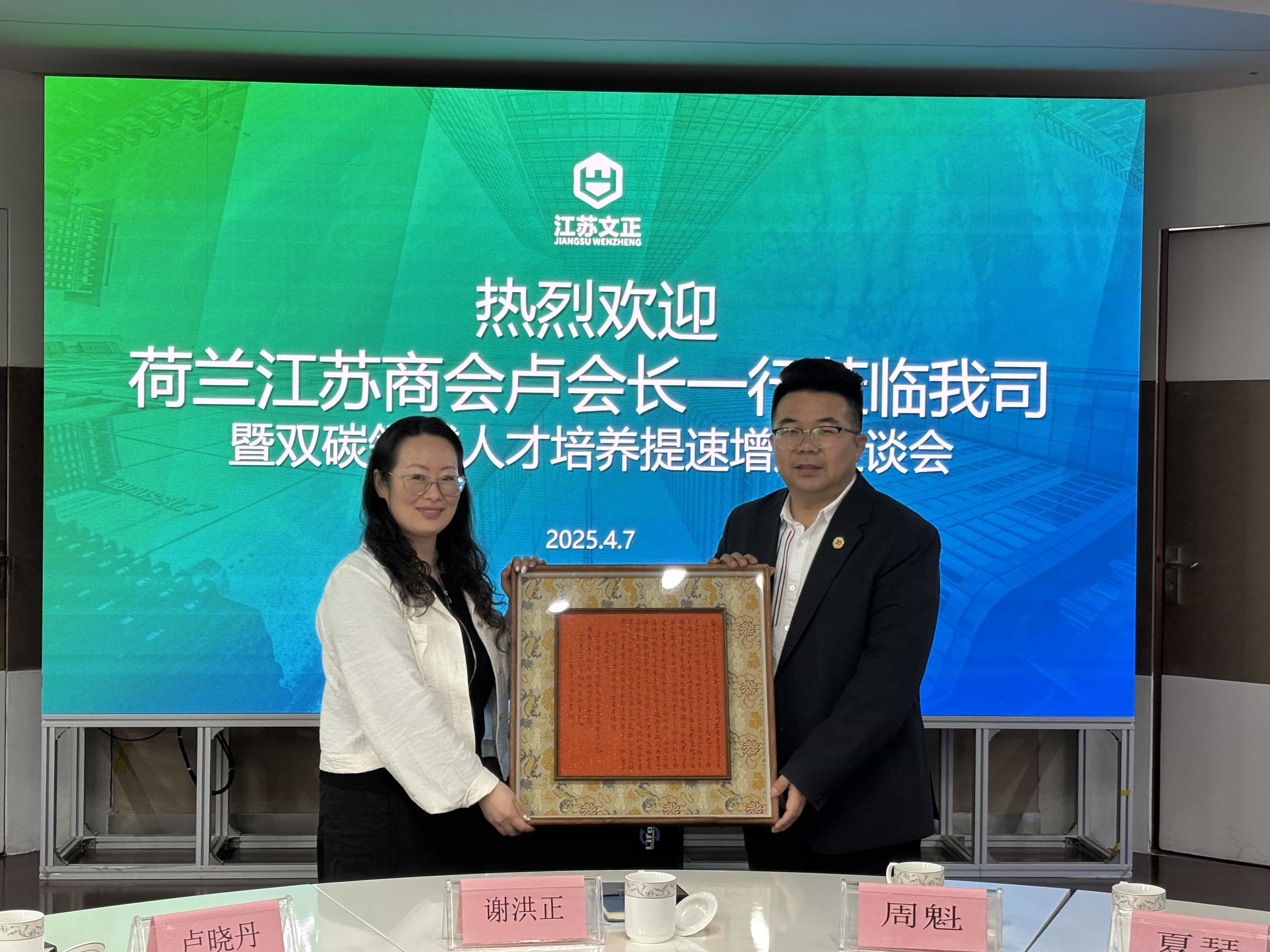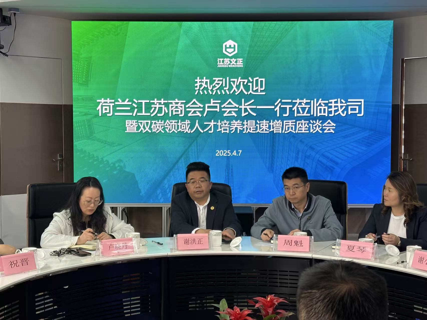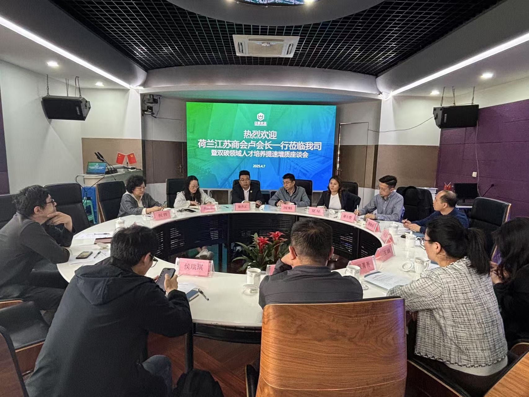 近日,荷兰江苏商会及南京节能环保产业协会一行到访米兰米兰首页,围绕“双碳人才培养提速增质”主题展开深度交流座谈会。荷兰江苏商会卢晓丹、夏琴,南京市节能环保产业协会秘书长周魁、企业部主任祝晋,宜兴科宇环保陈岩,民进苏州市委会调研处副处长谢小赞,安徽九辰环境陈海峰、侯瑞琪,中川环保总经理廖晓应,无锡泽邦环保科技总经理王婧,Rai China展览侯菁菁、华辰阳,米兰米兰首页董事长谢洪正共同出席了本次会议。