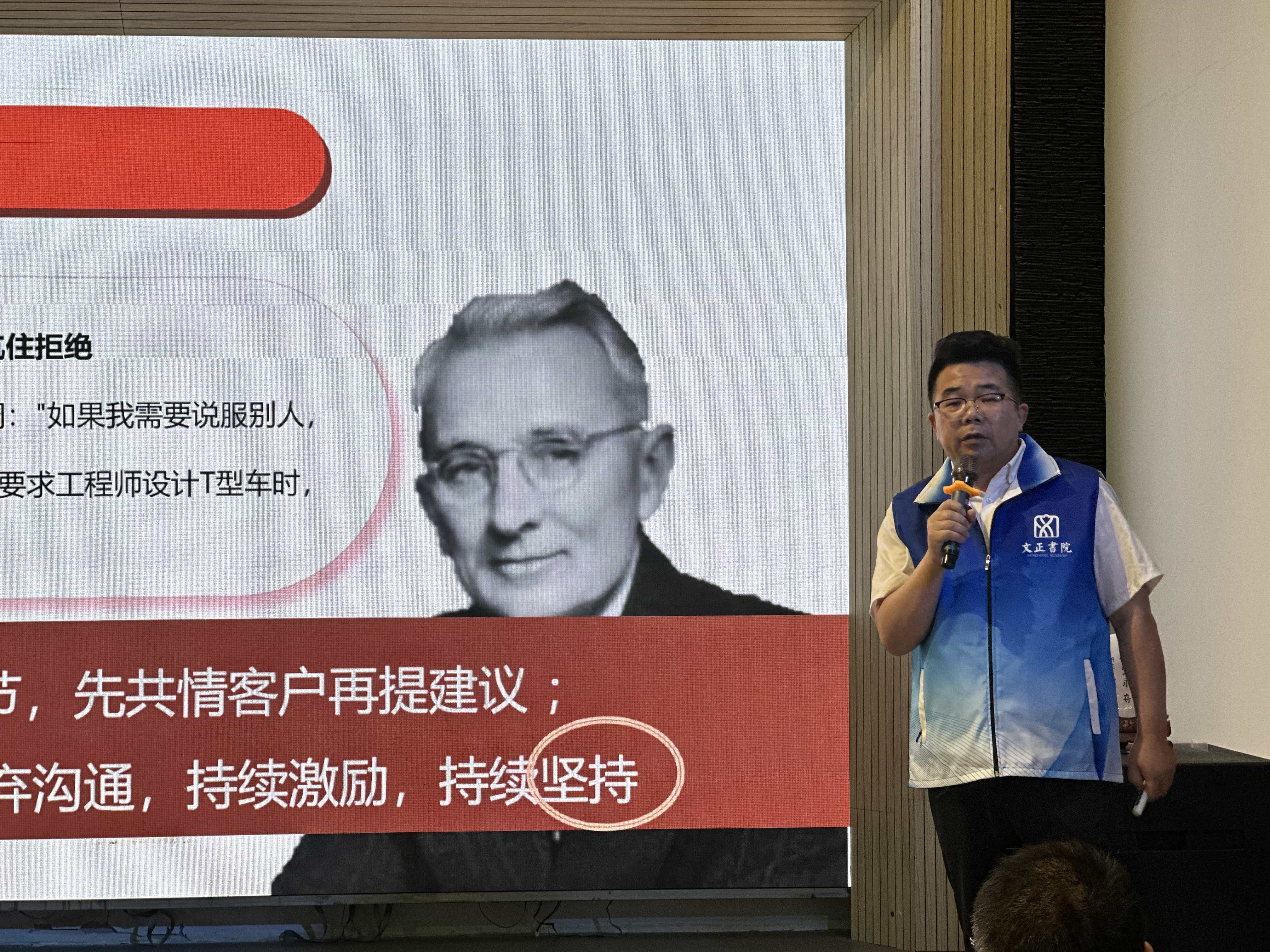 谢总则聚焦“外部客户拓展”,分享如何通过细节服务与饭局社交建立长期客户关系。他从客户需求分析、跟进技巧到饭局话题引导,层层剖析,积极与现场员工互动,为在场的所有人提供了可落地的实战策略。